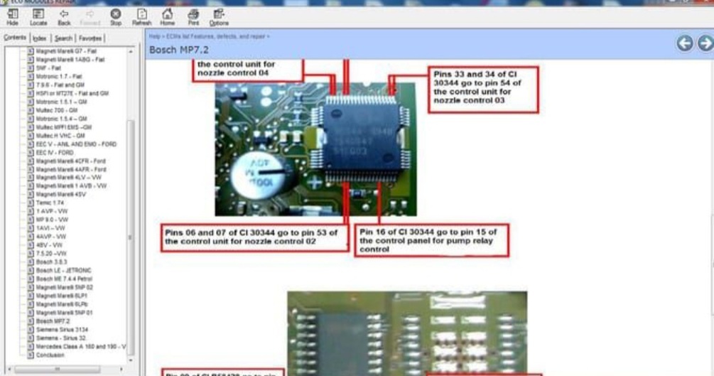 ECU Repair Helper , which contains the description and location of the component for many ECUs as well pinout for this component , common fault that you can encounter and how to fix it, and immo location